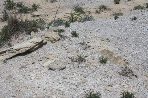 are likely comprised of this same dirty gypsum. This gypsum crust is not the same as the “desert varnish” seen on other arid rock surfaces.