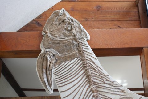 In 2007, professional fossil hunter Alan Detrich found a fossilized Xiphactinus protruding from a hillside between Scott City and Oakley. He has offered this find of an even larger “fish-within-a-fish” for sale to any willing buyer. 1 The next stop was Keystone Gallery, where we admired a number of large, mounted, fossilized fish
