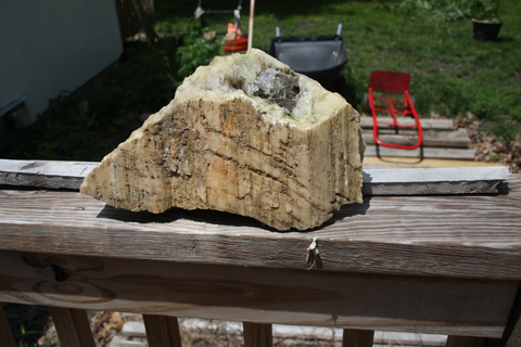 Scattered across the chalk beds of Wildcat Canyon in Western Kansas, you’ll stumble across veins of gypsum, a clear or white crystalline mineral lying within cracks in the surrounding chalk. At first glance, it appears to be chunks of petrified wood standing above the chalk. This photo shows the apparent “grain” of a chunk of gypsum crystal that was collected at Wildcat Canyon.