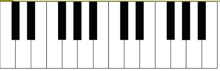 Now (and pay attention here), in ONE octave of 8 keys from C to C, there are TWO sets of black keys. The first set are C# and D#. The second set includes THREE keys -- F#, G#, and A#. Altogether there are FIVE black keys in the C octave. Those FIVE black keys, plus EIGHT white keys is a total of THIRTEEN keys per single octave. (Note, by the way, that logically, any sequence of 13 adjacent keys will include the same total number of black and white keys, albeit with different specific placement of those keys within each musical key.)