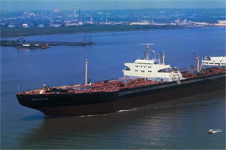 Esso Manhattan after being fitted with a special bow for breaking ice.3