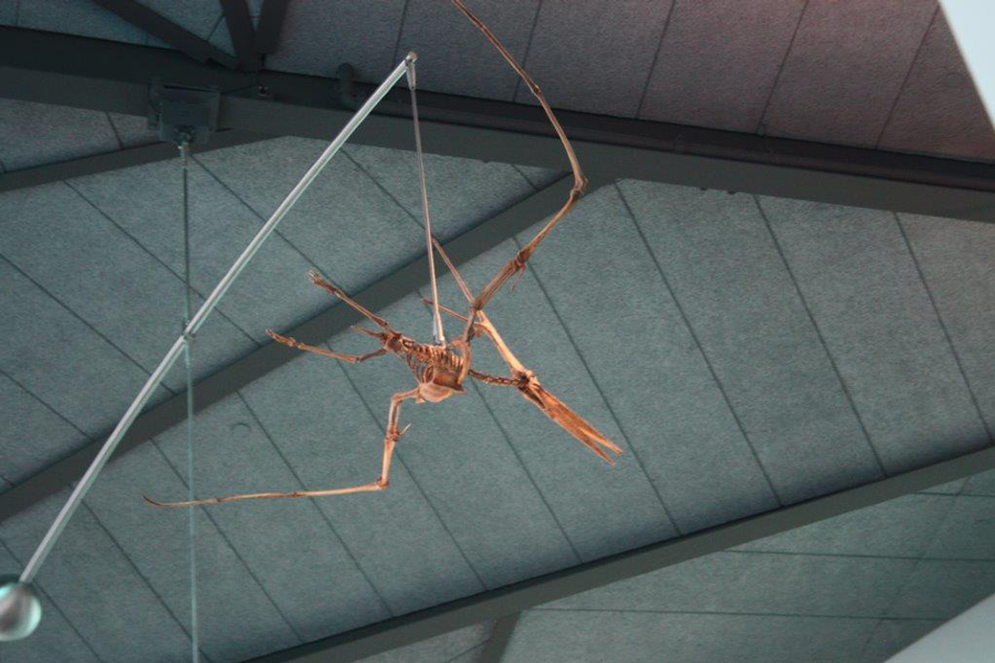 The museum has two skeletons of the flying reptile, pterodactyl, both supported on a revolving overhead mobile.