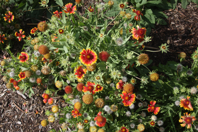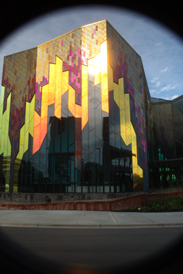 Outside the building are growing native wildflowers typical of the Kansas prairie. Interestingly, the hi-tech glass seems to transmit the vivid colors of some of those flowers... designed by our Creator.