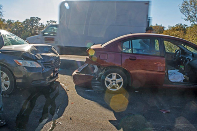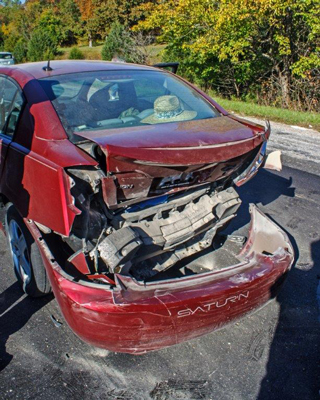 There were very few signs warning of the road work before we met up with the standing row of cars. Bob came up on the stopped cars and suddenly pulled off the road to the right. Kevin was able to stop his car, short of hitting the car in front of us. Before anyone had a chance to say a thing, Kevin's Saturn (again, the car, not the planet) was struck from behind by another car that was going about 40 mph.