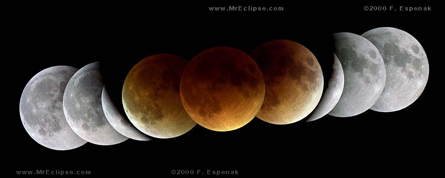A lunar eclipse occurs when the Moon passes through Earth's shadow opposite from the Sun. lunar eclipses can be seen by anyone on the same side of the Earth as the Moon. A total lunar eclipse can only occur during a full Moon.