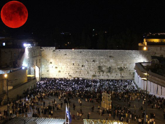 The following photo shows a total Lunar eclipse, also known as a "blood moon" in the night sky over the wailing wall in Jerusalem, Israel.5