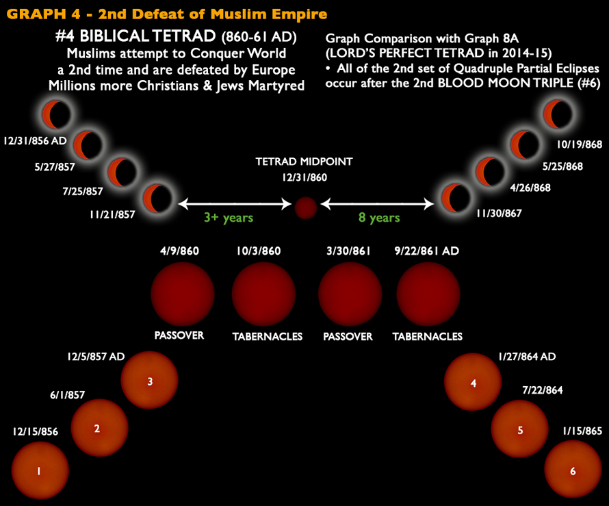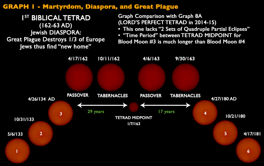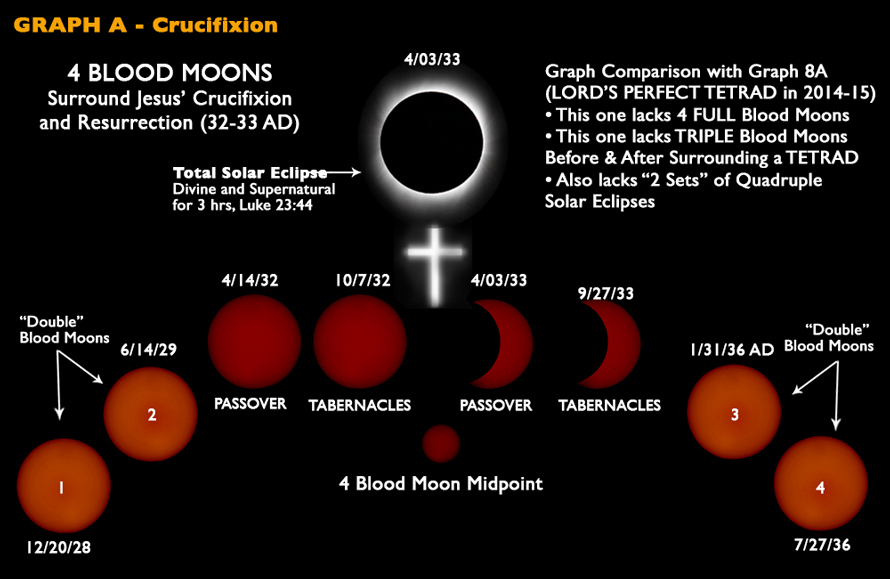 Grevas discovered that this tetrad coincides with the feasts of Passover and Tabernacles. He also discovered solar and lunar eclipses that surrounded the event.
